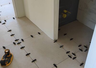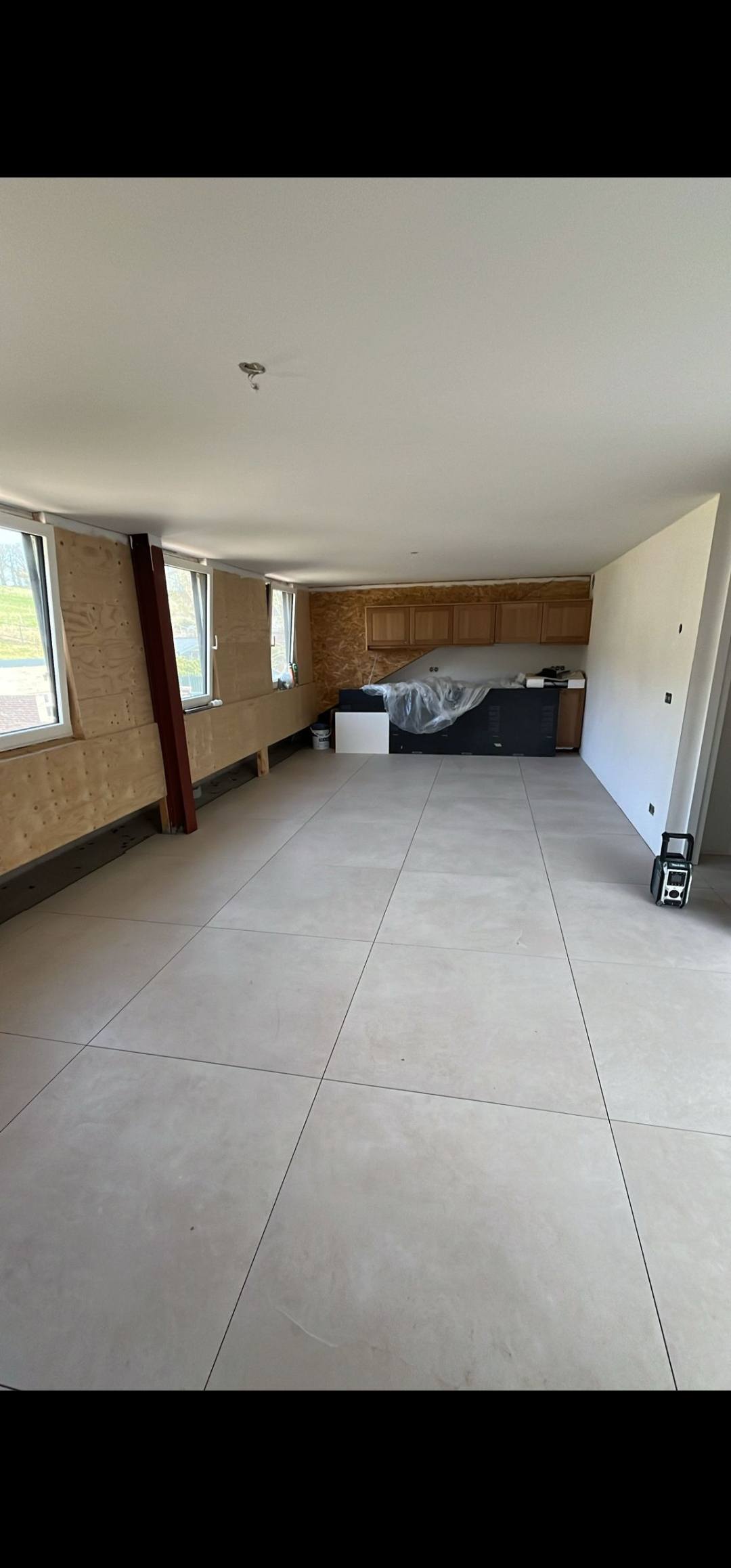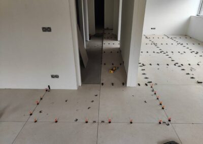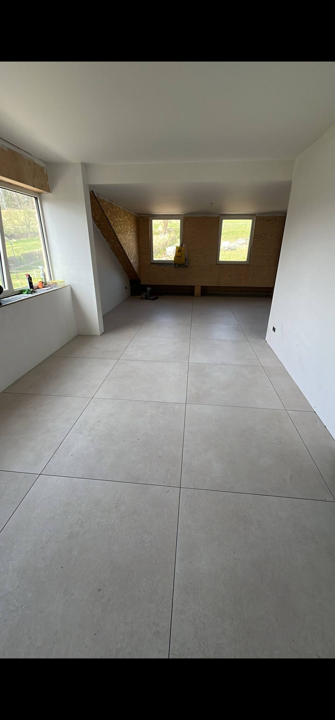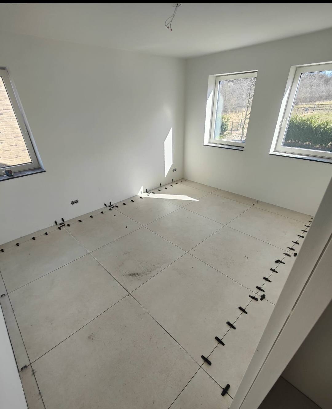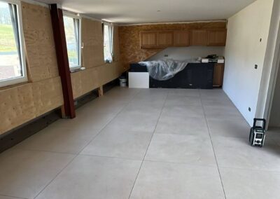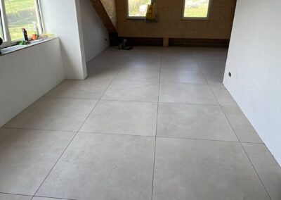 In Vaesrade zijn we dit vrijstaande pand aan het voorzien van 120 m2 nieuwe tegelvloer, nieuwe badkamer en toilet. Ivm de zwevende ondervloer maken wij naar iedere ruimte onder de deur een delitatie naad zodat deze zijn werk kan doen.