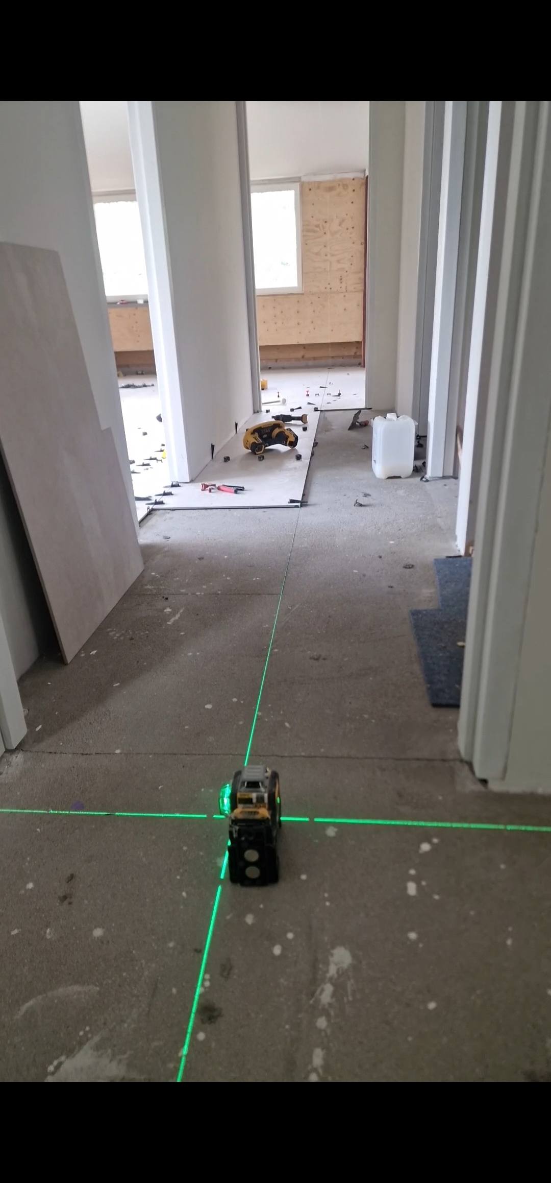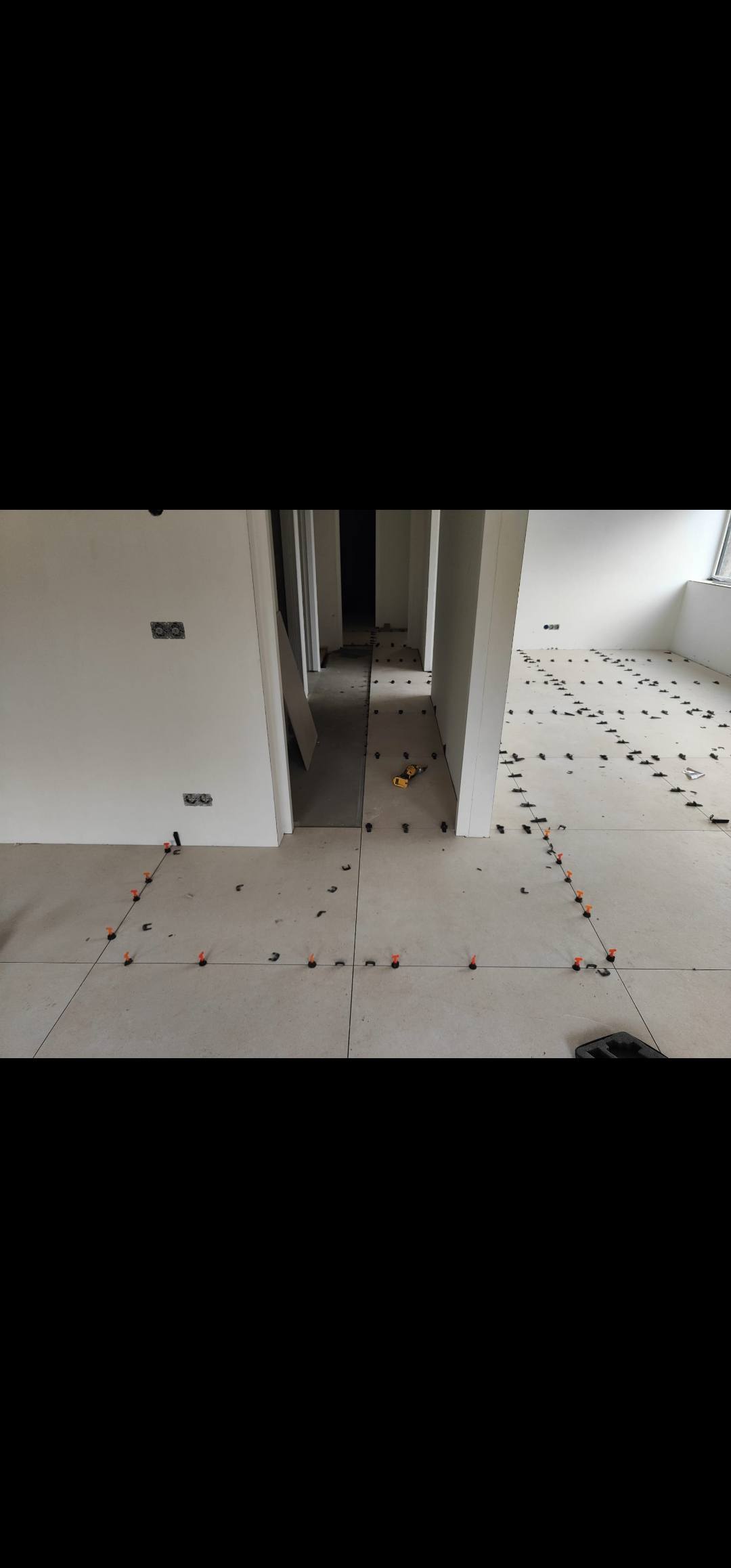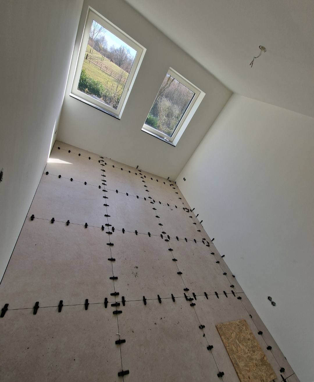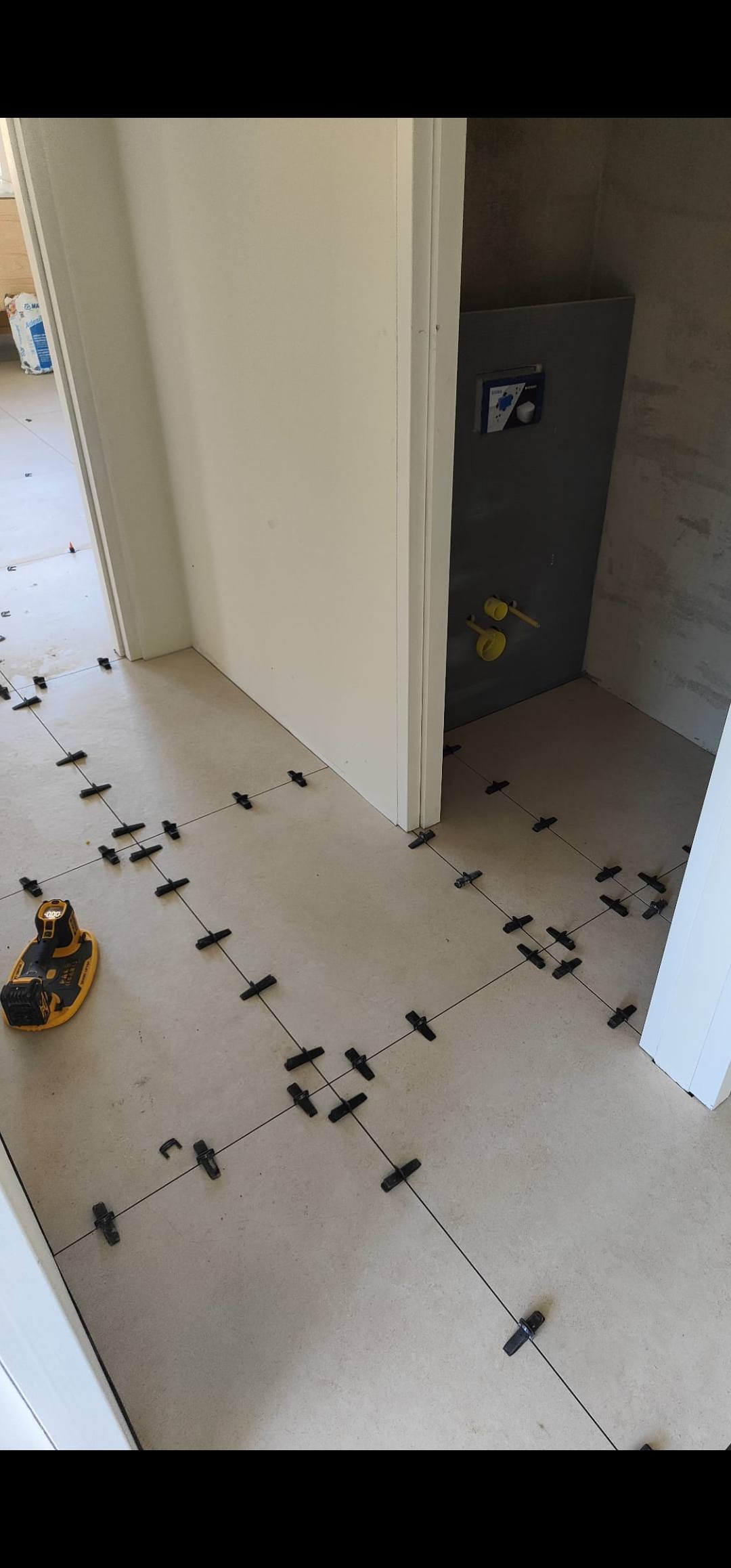 In Vaesrade zijn we dit vrijstaande pand aan het voorzien van 120 m2 nieuwe tegelvloer, nieuwe badkamer en toilet. Ivm de zwevende ondervloer maken wij naar iedere ruimte onder de deur een delitatie naad zodat deze zijn werk kan doen.